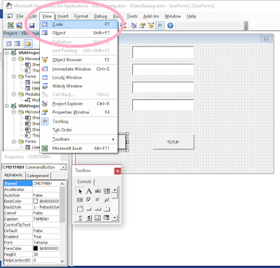 kode pada Commond Button “TAMBAH”. Klik command button “TAMBAH“ > View > Code